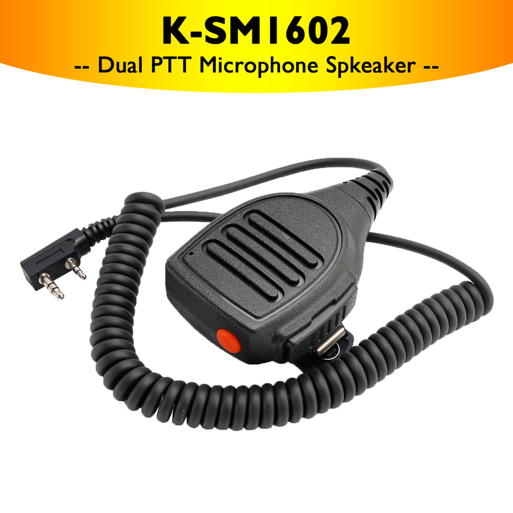 K-SM1602 Dual PTT-microfoonluidspreker voor Kenwood TK-208 TH-D7 RPU416A KG-UVD1 TG-K4AT PX-777 LT-2288 VEV-3288S UV-5RA Walkie-talkie met ijzeren clip, handmicrofoon, spreekmicrofoon, schoudermicrofoon
