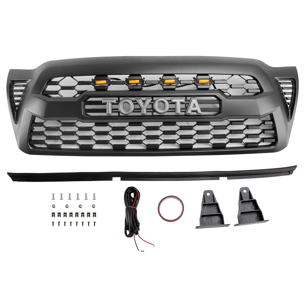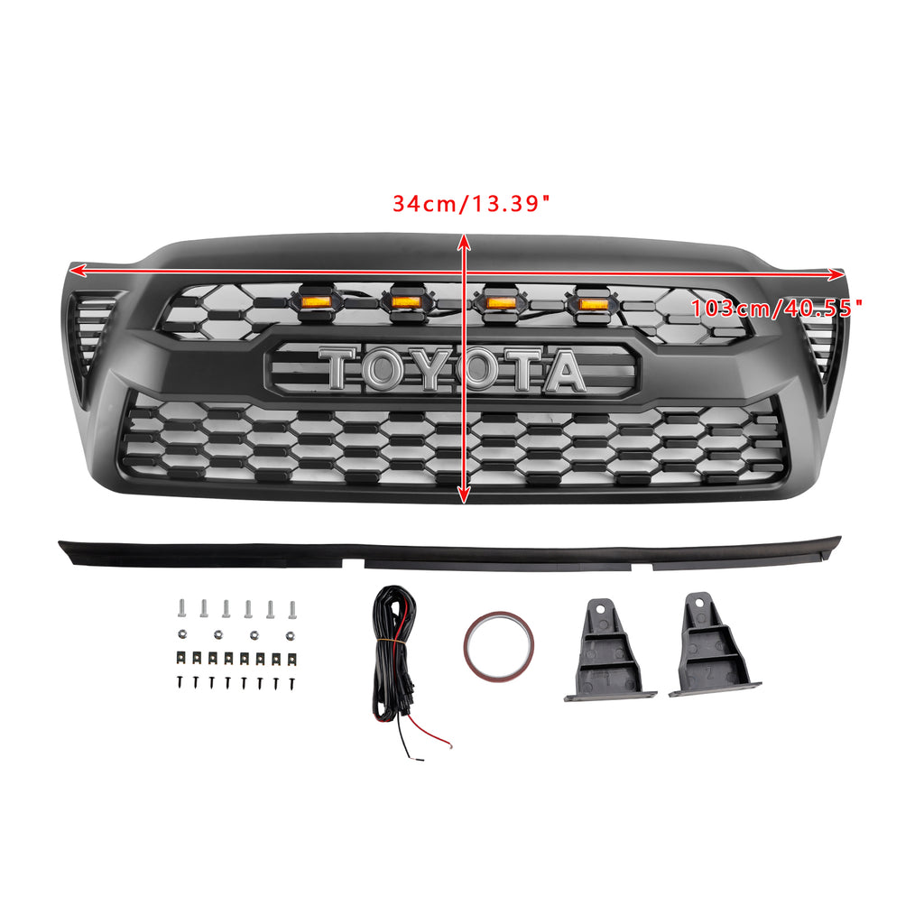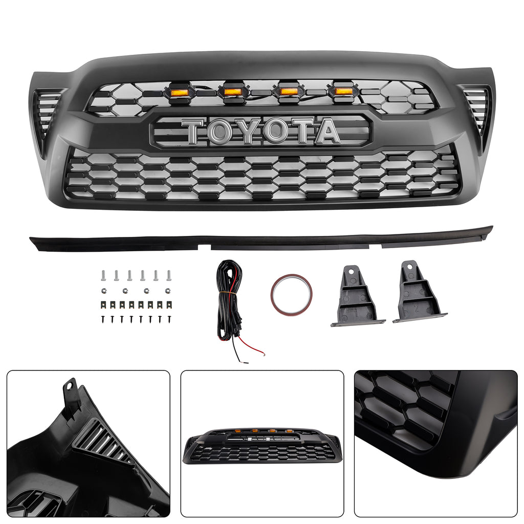 Matzwarte voorbumpergrille, geschikt voor Toyota Tacoma 2005-2011 met LED