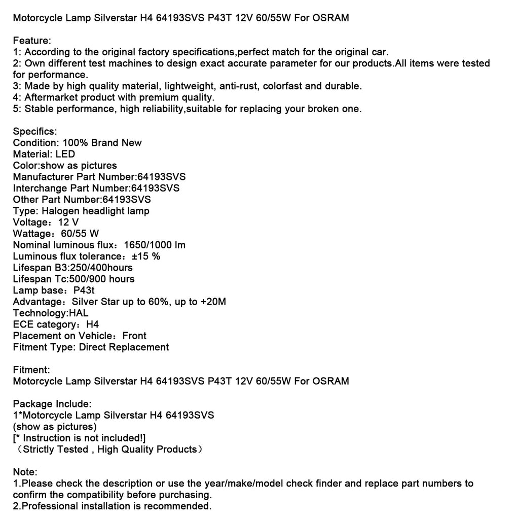 Motorfietslamp Silverstar H4 64193SVS P43T 12V 60/55W voor OSRAM