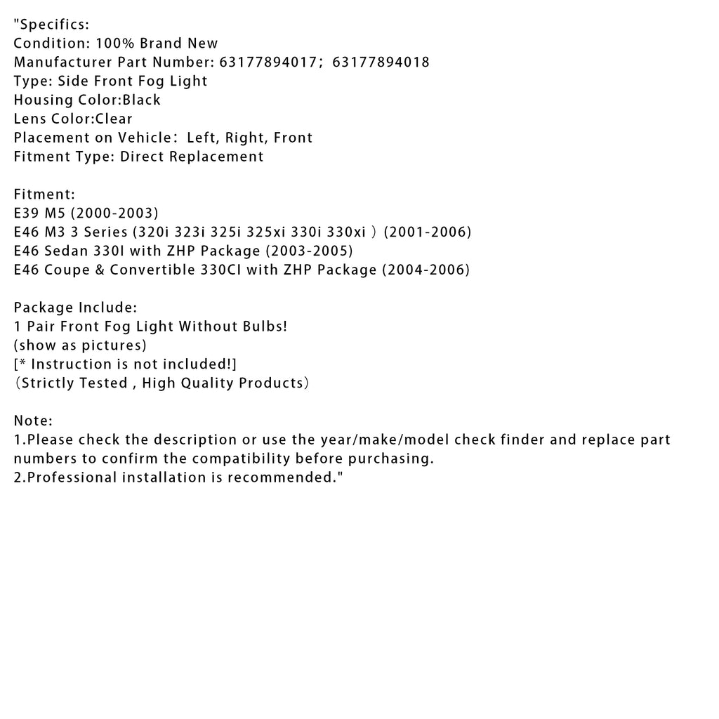 Paar mistlampen voor zonder lampen voor BMW E46 3-serie 2001-2006