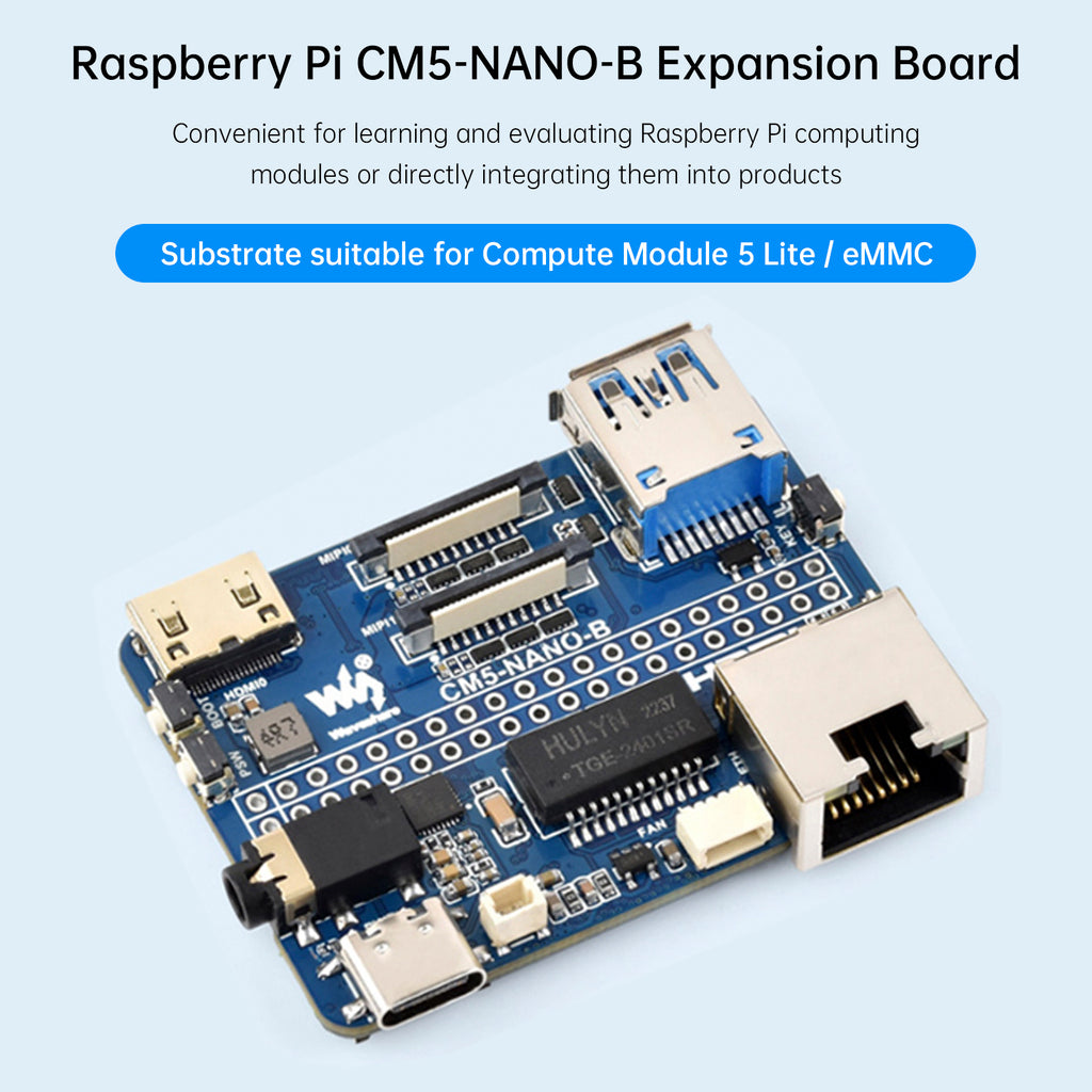 Raspberry Pi CM5-NANO-A uitbreidingskaart, handig voor het leren en evalueren van Raspberry Pi-computermodules of voor directe integratie in producten, Compute Module 5 Lite/eMMC geschikt basisbord