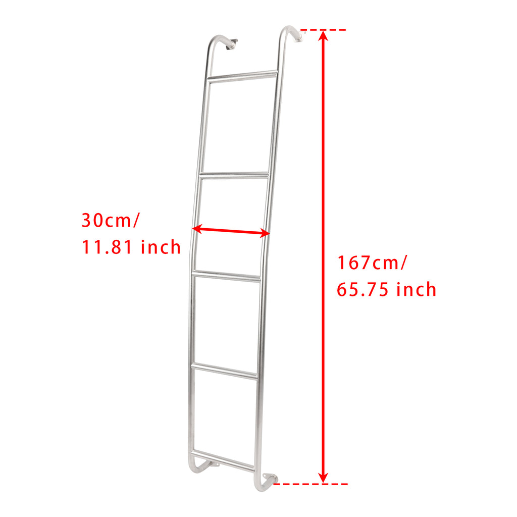 4.Ladder features "over the door" hooks and heavy gauge mounting plates for secure attachment to your van door (drilling required)