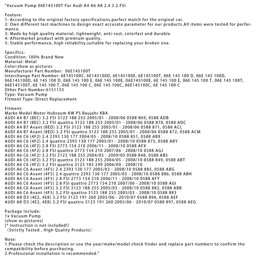 Vacuümpomp 06E145100T voor Audi A4 A6 A8 2.4 3.2 FSI