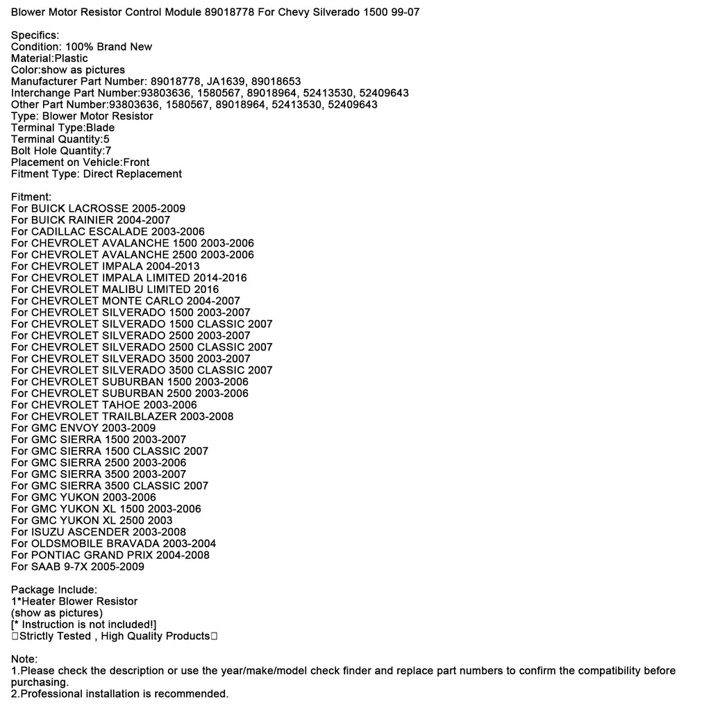 Blowermotorweerstandregelmodule 89018778 voor Chevy Silverado 1500 99-07