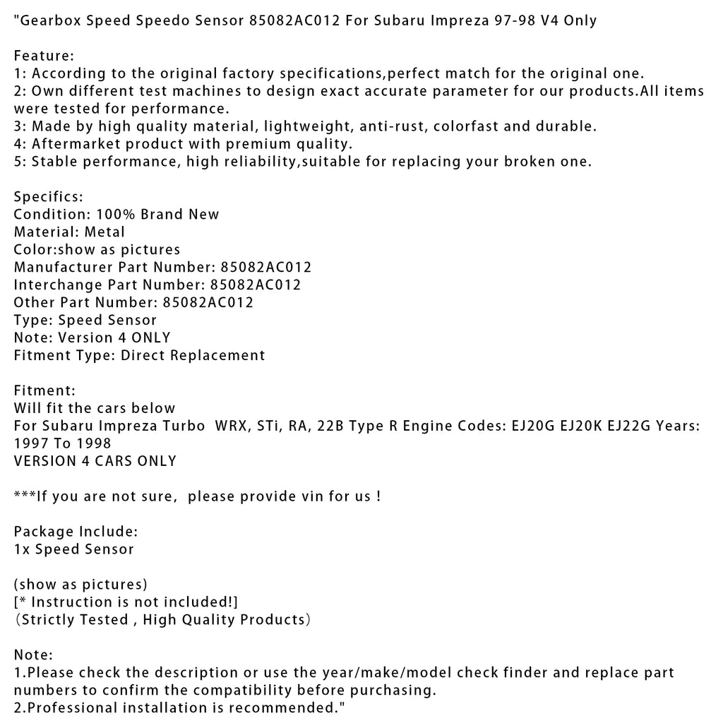 Versnellingsbaksnelheidsmetersensor 85082AC012 Alleen voor Subaru Impreza 1997-1998 V4