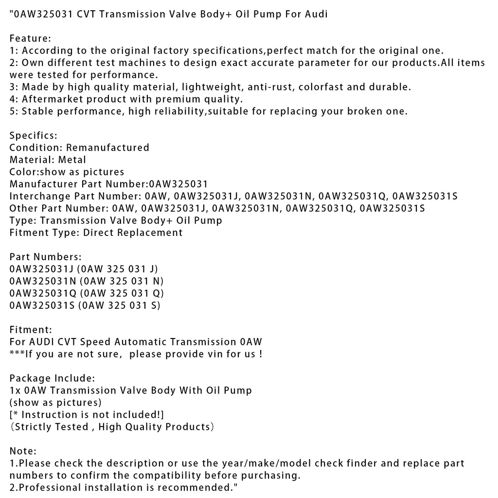 0AW325031 CVT-girkasseventilhus + oljepumpe for Audi