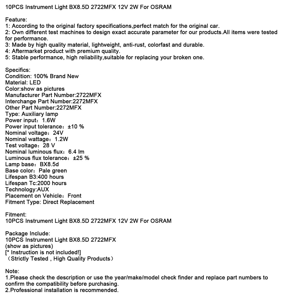 10 stk. instrumentlampe BX8.5D 2722MFX 12V 2W for OSRAM