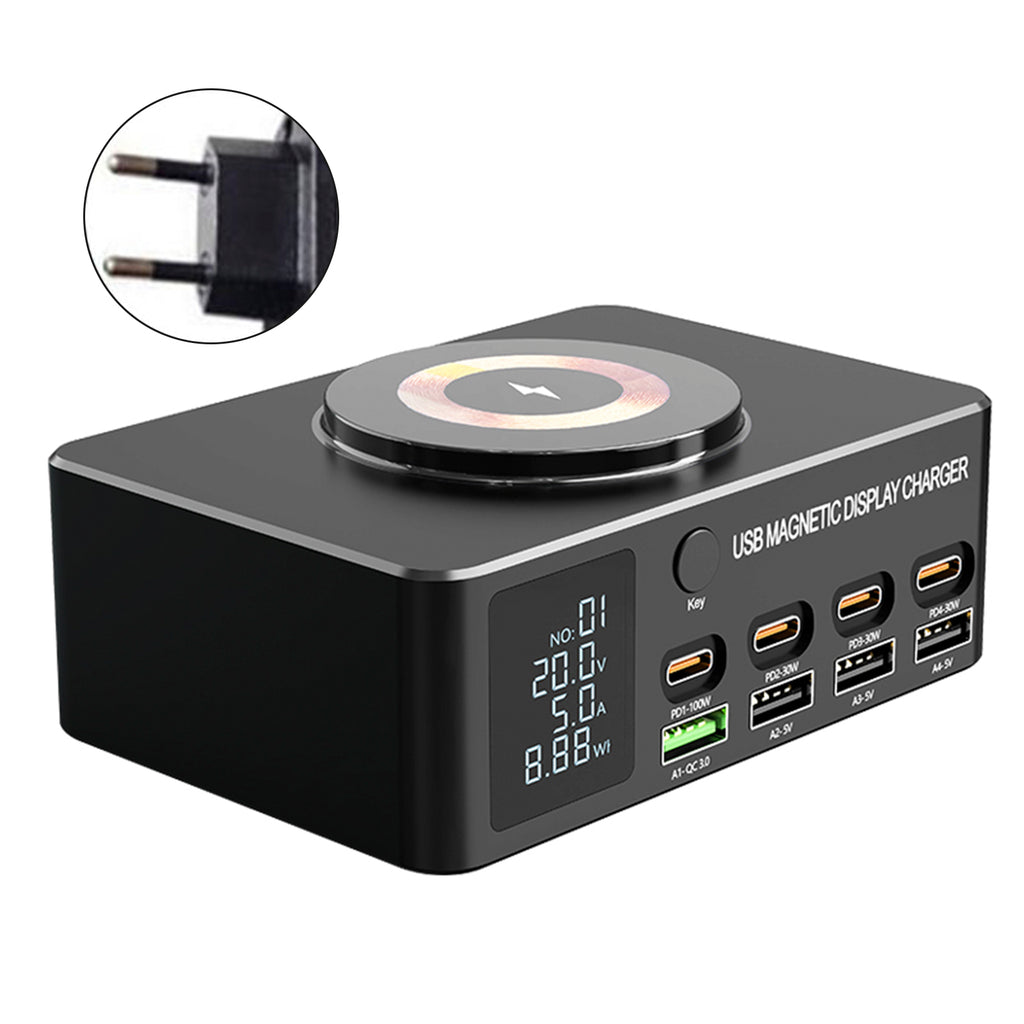 140W hurtiglader intelligent digital skjerm PD100W mobiltelefon bærbar PC magnetisk trådløs lading multiport USB-lader EU-plugg