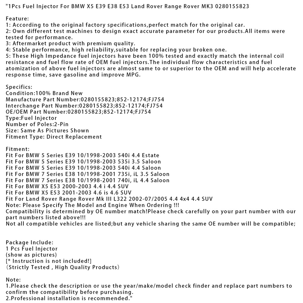 1Pcs Fuel Injector For BMW X5 E39 E38 E53 Land Rover Range Rover MK3 0280155823