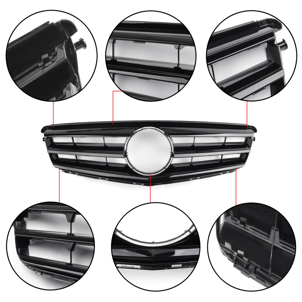 2008–2014 Benz C-klasse W204 Med LED-emblem C300/C350 Sort frontgrill Generisk