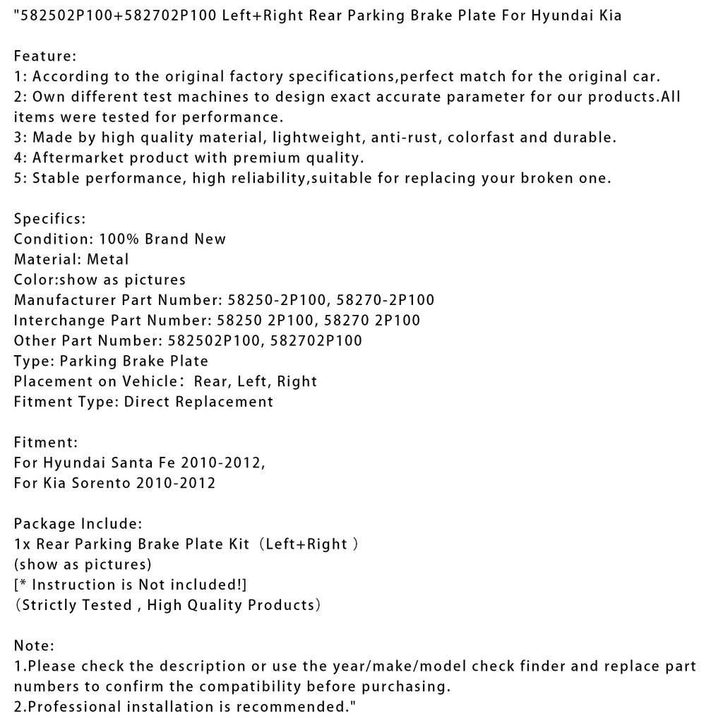 582502P100+582702P100 Left+Right Rear Parking Brake Plate Fit For Hyundai Kia