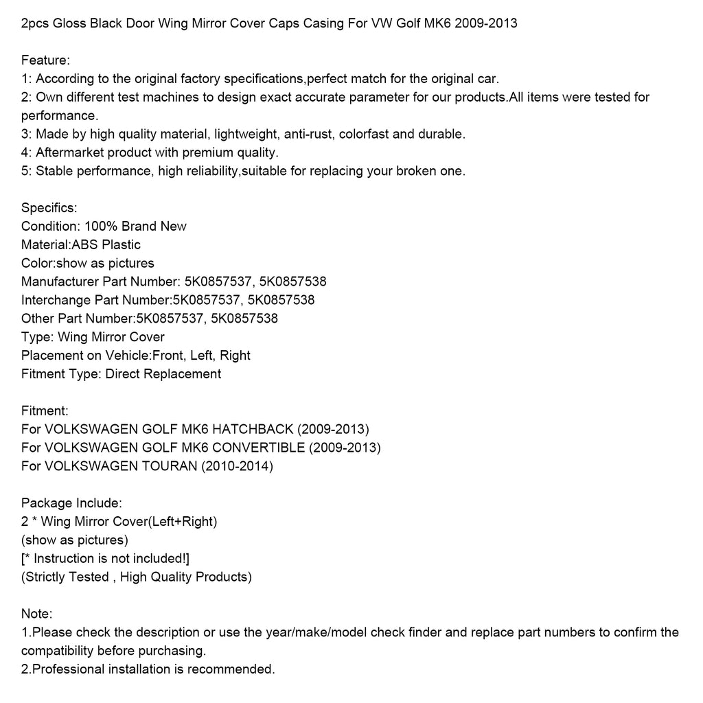 2 stk. glanset svart dørspeildekseldeksel passer til VW Golf MK6 2009-2013
