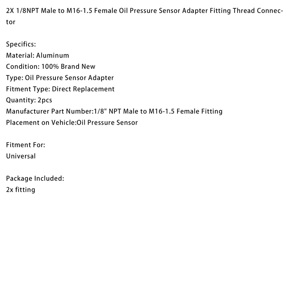 2x 1/8NPT Male to M16-1.5 Female Oil Pressure Sensor Adapter Fitting Thread Connector