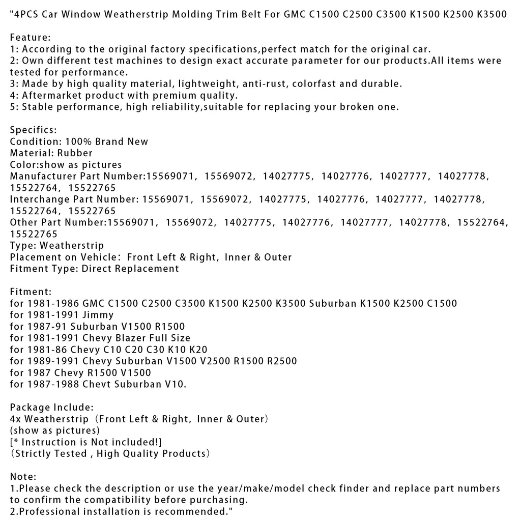 4PCS Car Window Weatherstrip Molding Trim Belt+2 Window SealsFor GMC C1500 C2500 C3500 K1500 K2500 K3500