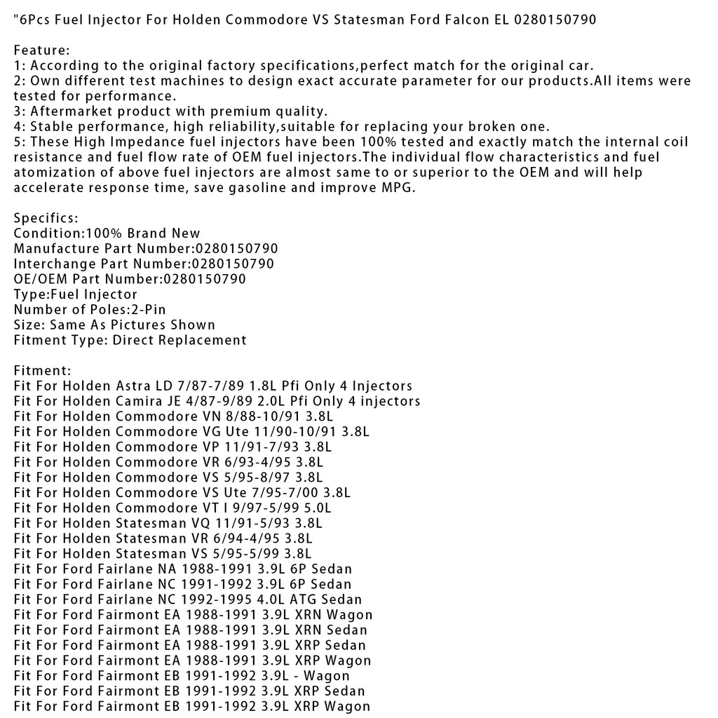 6Pcs Fuel Injector For Holden Commodore VS Statesman Ford Falcon EL 0280150790