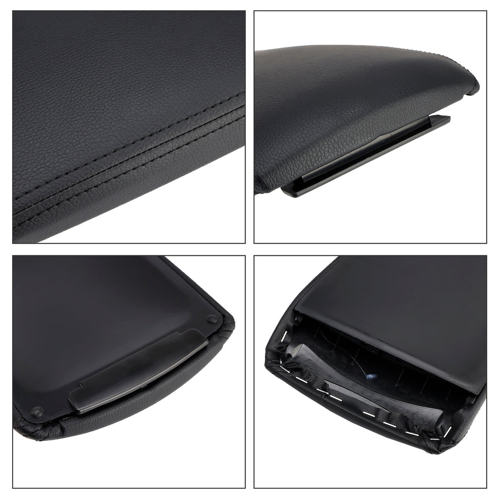 Black Leather Center Console Armrest Lid Cover For Audi A6 C6 2005-2011