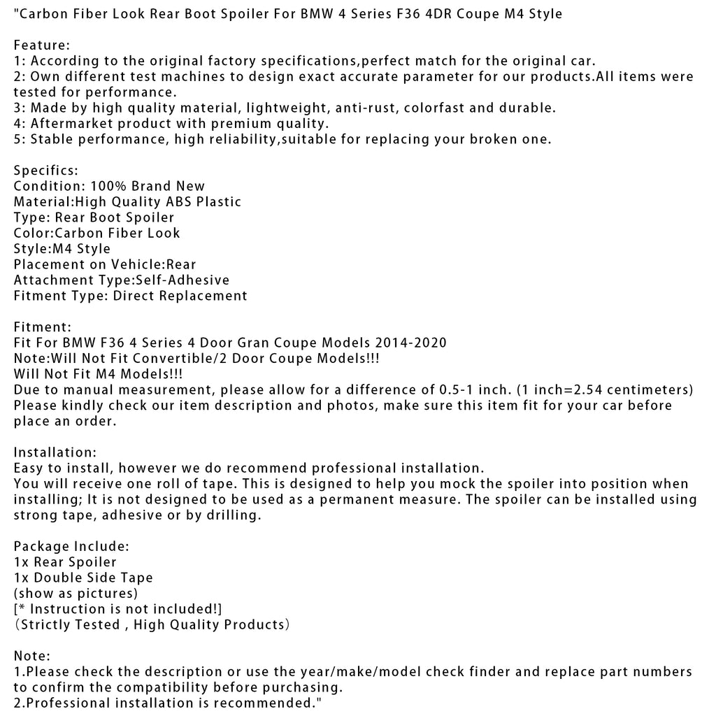 Carbon Fiber Look Rear Boot Spoiler Fit For BMW 4 Series F36 4DR Coupe M4 Style