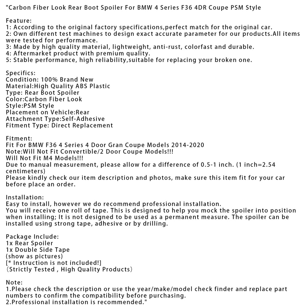 2014-2020 BMW 4 Series F36 4DR Coupe Carbon Fiber Look Rear Boot Spoiler PSM Style