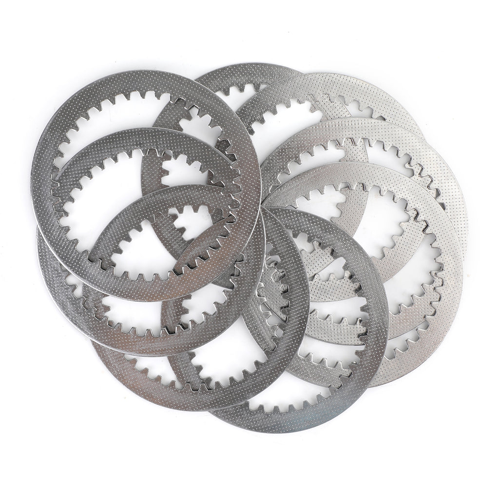 Settet inneholder 9 friksjonsplater på kjerner av herdet stål og 8 drivplater av herdet stål.