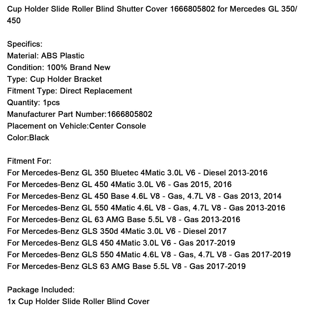 Cup Holder Slide Roller Blind Shutter Cover 1666805802 for Mercedes GL 350/ 450