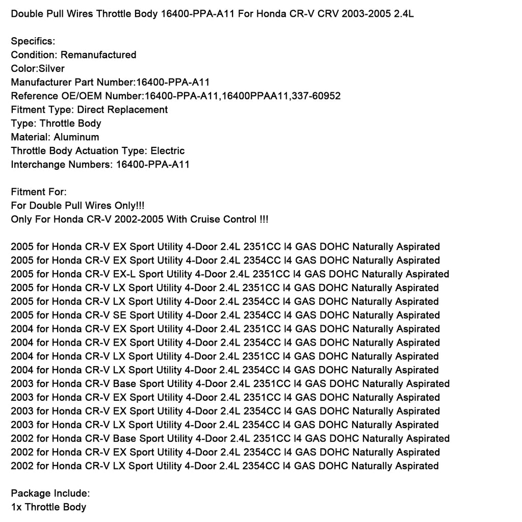 Double Pull Wires Throttle Body 16400-PPA-A11 For Honda CR-V CRV 2003-2005 2.4L