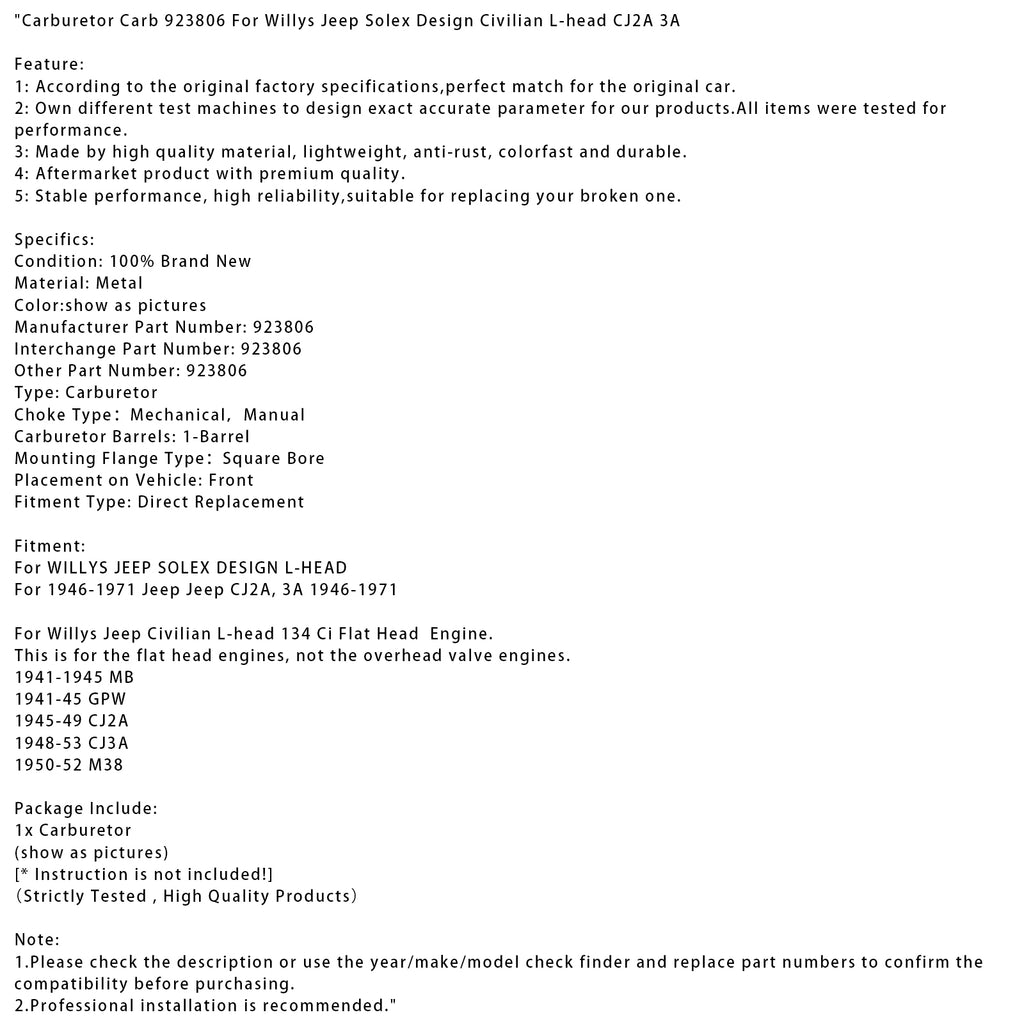 For WILLYS JEEP SOLEX DESIGN L-HODE