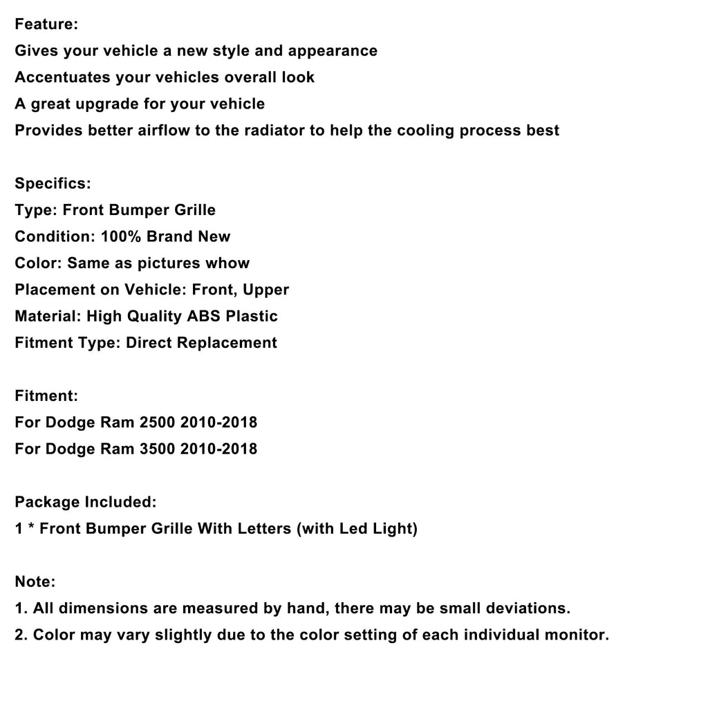 Front Bumper Grille Fit for Ram 2500/3500 Laramie Limited 2010-2018 W/ Led Light