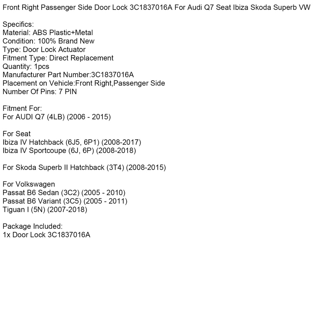 Dørlås foran på passasjersiden, høyre 3C1837016A for Audi Q7, Seat Ibiza, Skoda Superb, VW