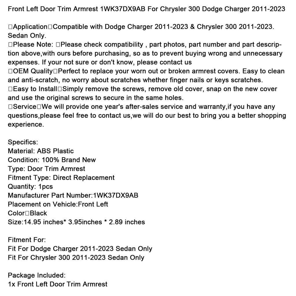 Armlener på venstre dør foran 1WK37DX9AB for Chrysler 300 Dodge Charger 2011-2023