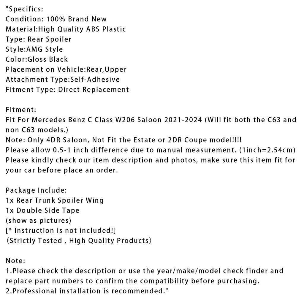 Passer til Mercedes Benz C-klasse W206 Sedan 2021–2024 (Passer til både C63-modeller og modeller utenom C63.)