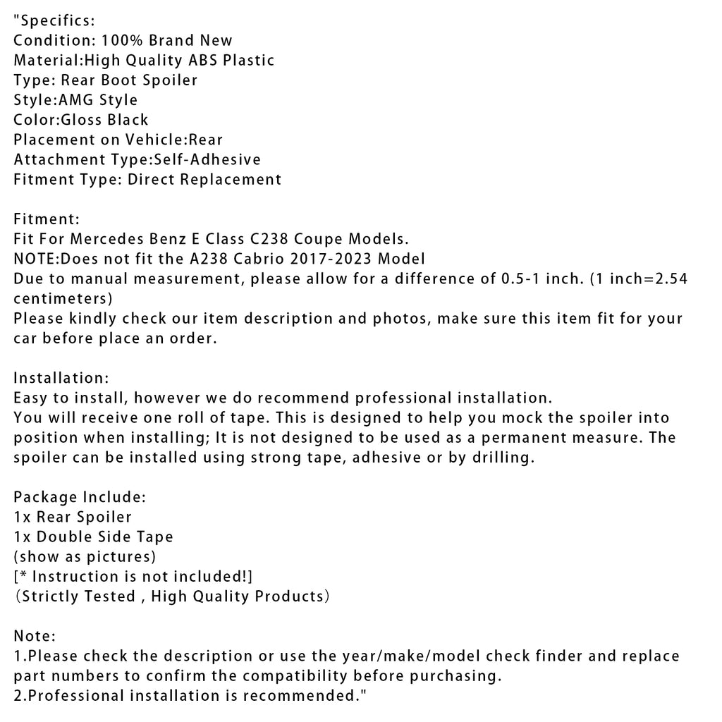 Glanset svart bakspoiler til Mercedes-Benz E-klasse C238 W213 Coupé 16+ AMG-stil