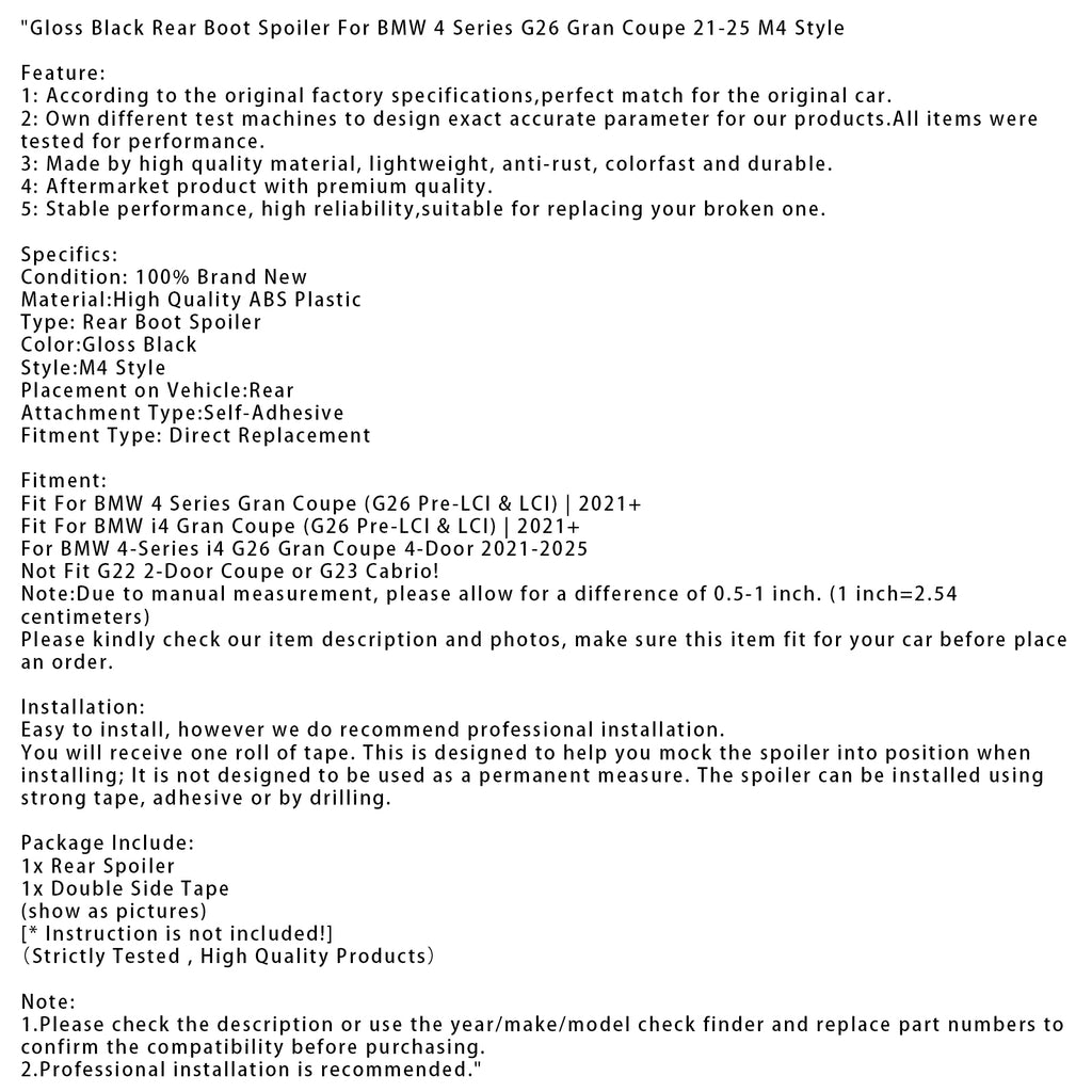 Gloss Black Rear Boot Spoiler Fit For BMW 4 Series G26 Gran Coupe 2021-2025 M4 Style