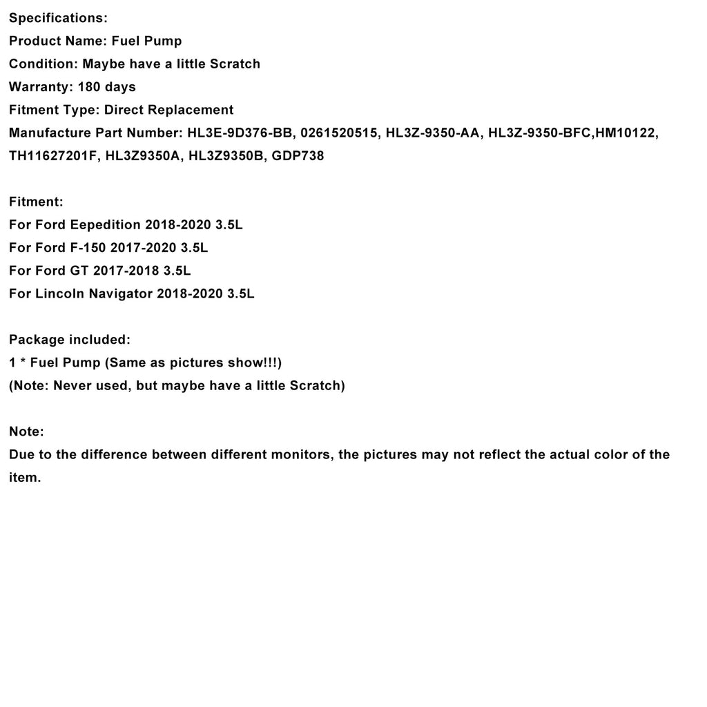 High Pressure Fuel Pump HL3E-9D376-BB Fit Ford F150 V6 3.5L 2017-2019