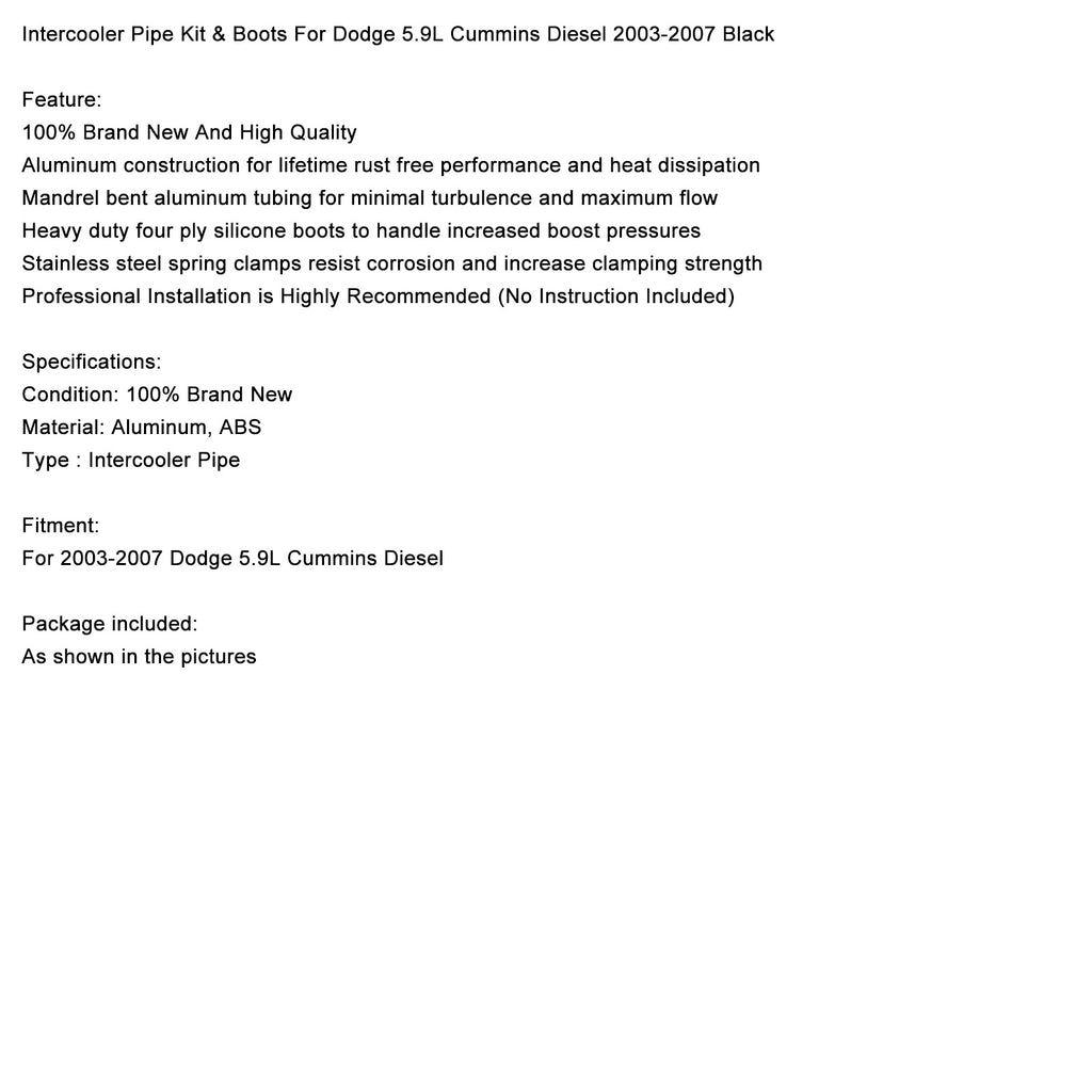 Intercooler rørsett && Mansjetter til Dodge 5.9L Cummins Diesel 2003-2007 Svart