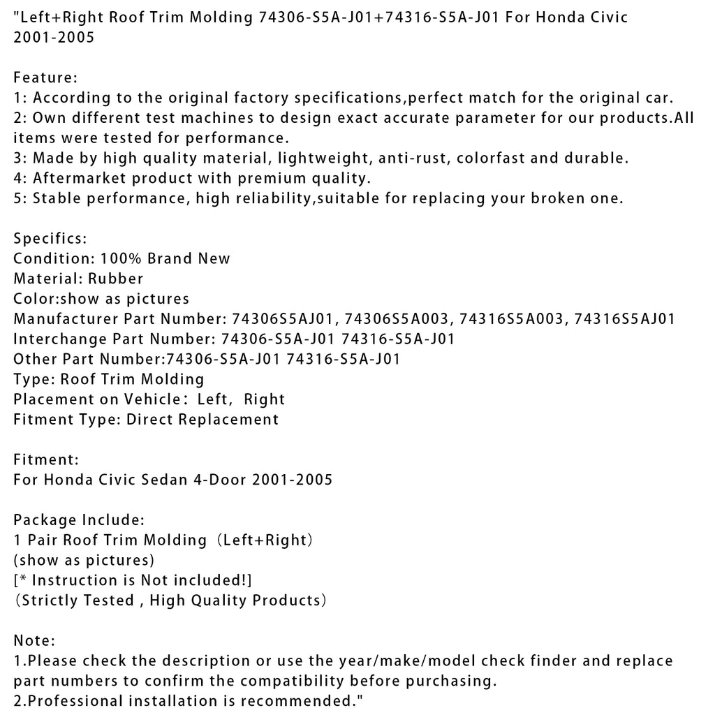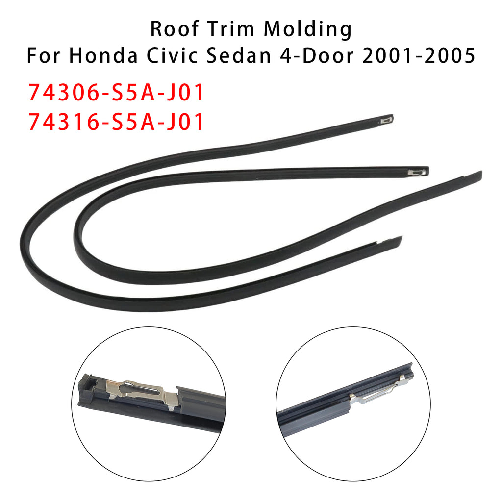 Left+Right Roof Trim Molding 74306-S5A-J01+74316-S5A-J01 Fit For Honda Civic 2001-2005