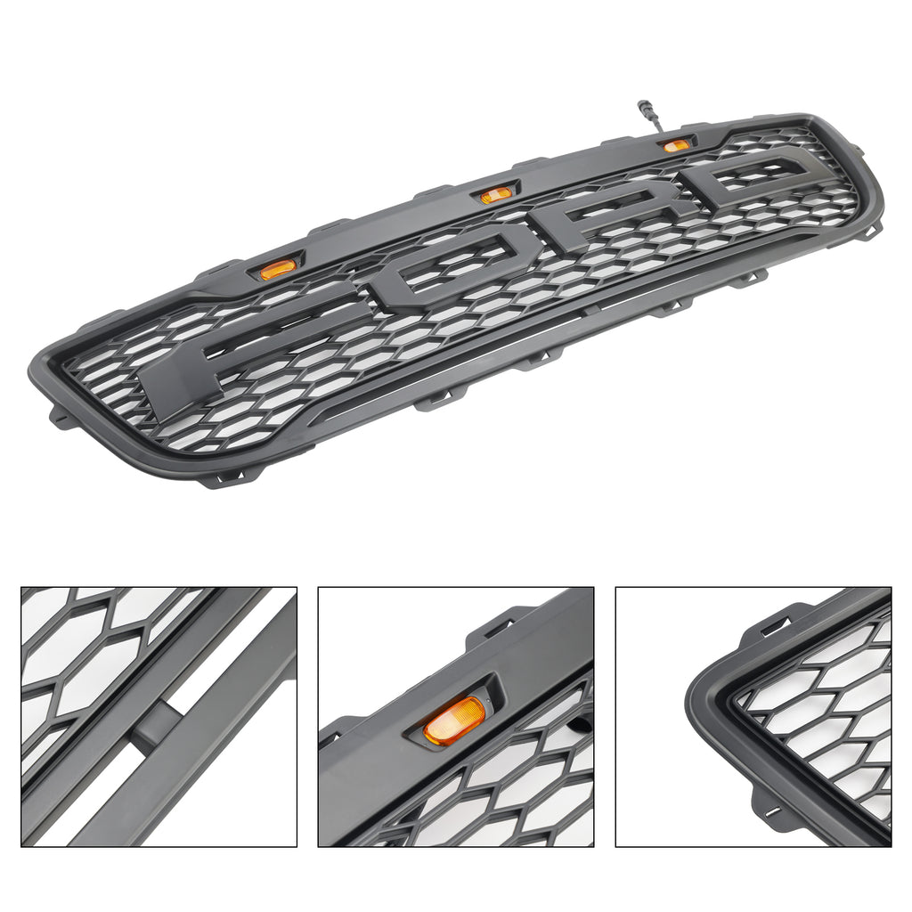Matt svart frontgrill med honningkakemønster passer til Ford F150 1999-2003 med LED
