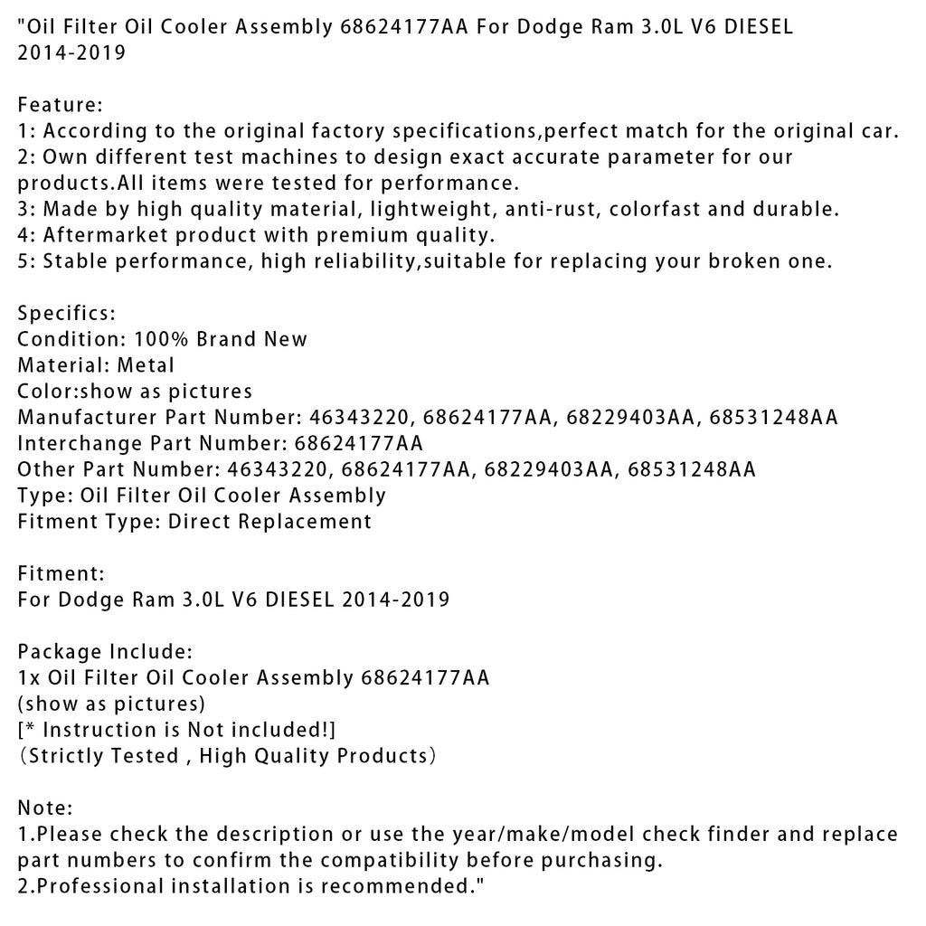 Oil Filter Oil Cooler Assembly 68624177AA Fit For Dodge Ram 3.0L V6 DIESEL 2014-2019