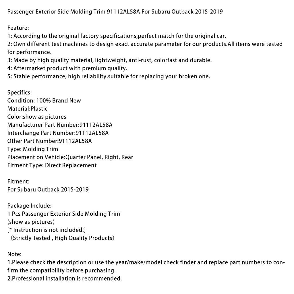Passenger Exterior Side Molding Trim 91112AL58A Fit For Subaru Outback 2015-2019