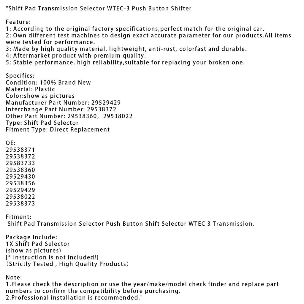 Selettore di trasmissione a pulsante WTEC-3 con pastiglia del cambio