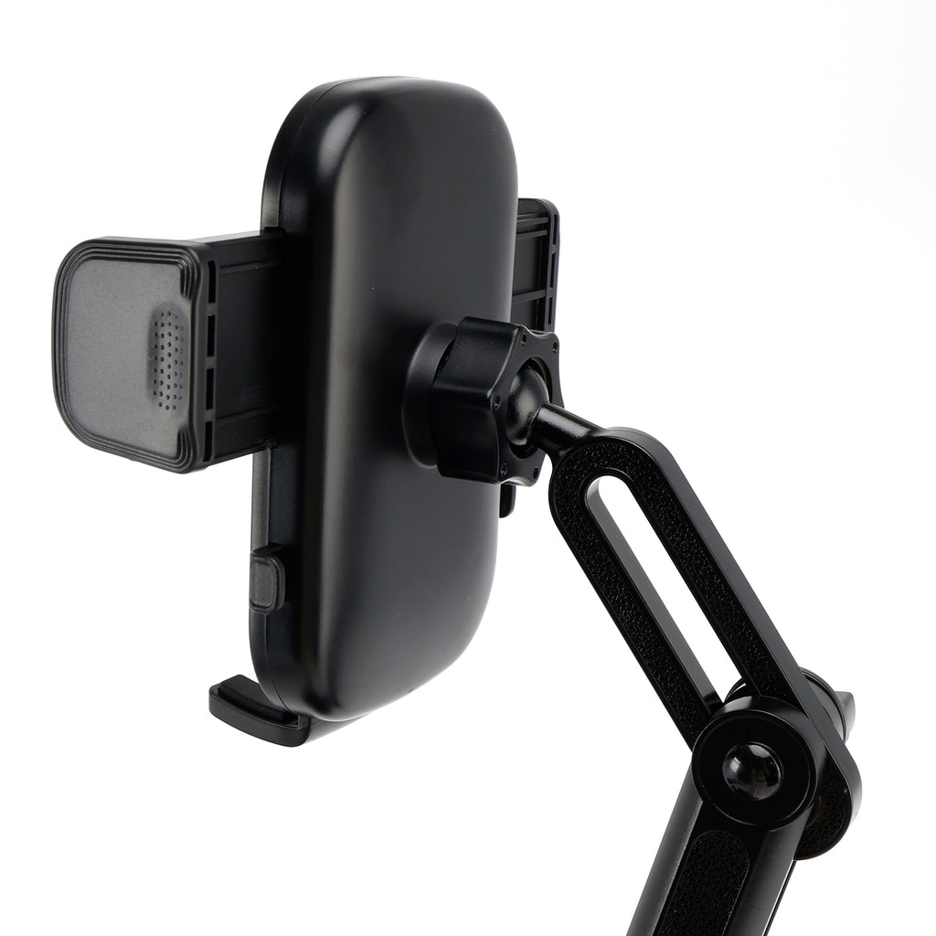 4: Stabilt telefonstativ: Oppgradert med den nyeste slitesterke og robuste designen for lang hals, og gir god stabilitet på svingende veier. Den dypere armen og det fleksible grepet beskytter telefonen din 360°, og støtten fra trekantstrukturen holder telefonen i sjakk. Du trenger ikke å bekymre deg for at telefonen skal bevege seg under akselerasjon eller brå svinger.