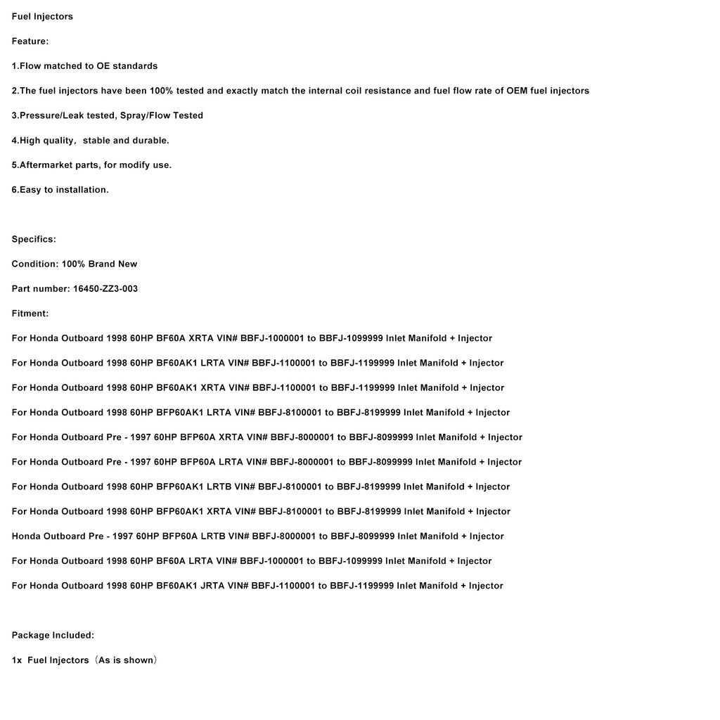Fuel Injectors Fit for Honda 1998 60HP BF60A 16450-ZZ3-003