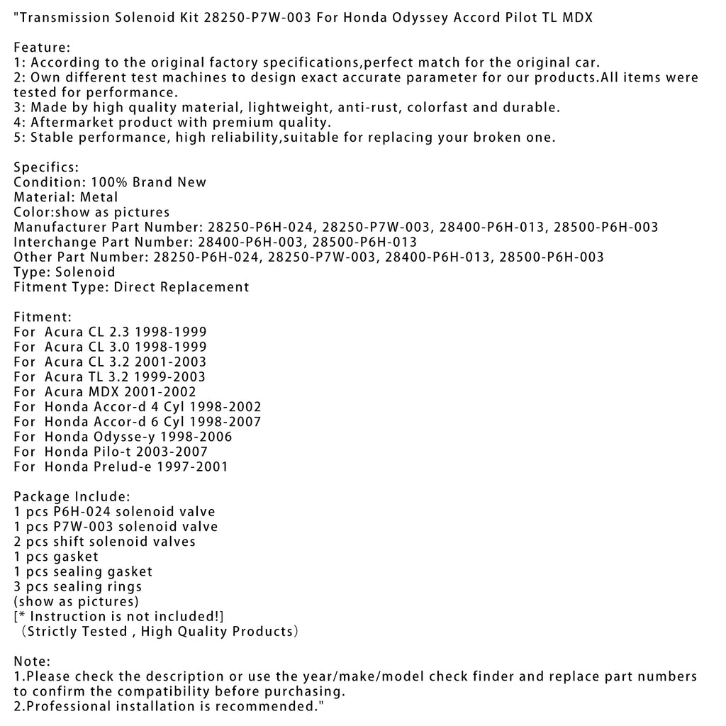 Transmission Solenoid Kit 28250-P7W-003 For Honda Odyssey Accord Pilot TL MDX