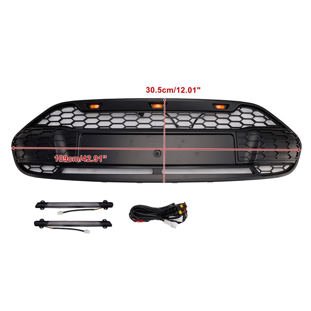 Black Front Bumper Grill Grille Fit for Ford Transit Connect 2014-2018 W/LED