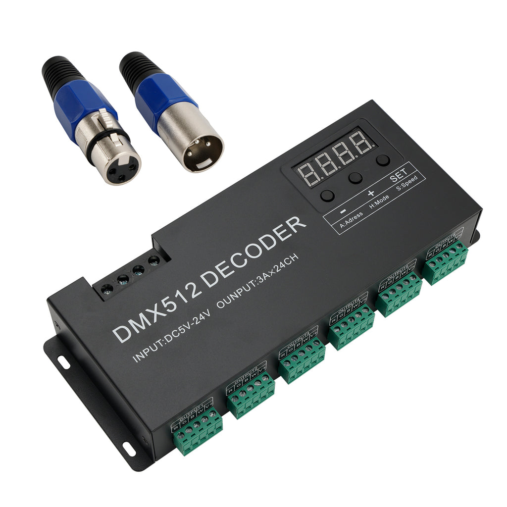 24 Channel DMX 512 Decoder RGBW PWM Dimmer Driver LED Strip Light Controller