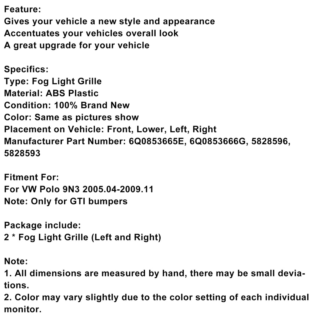 2PCS Fog Light Cover Grille Grill Fit VW Polo 9N3 GTI 2005-2009