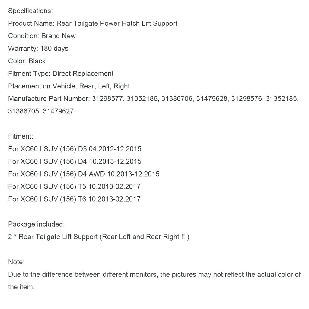 2PCS Power Liftgates Lift Support 31386705 31386706 Fit for Volvo XC60 2012-2017