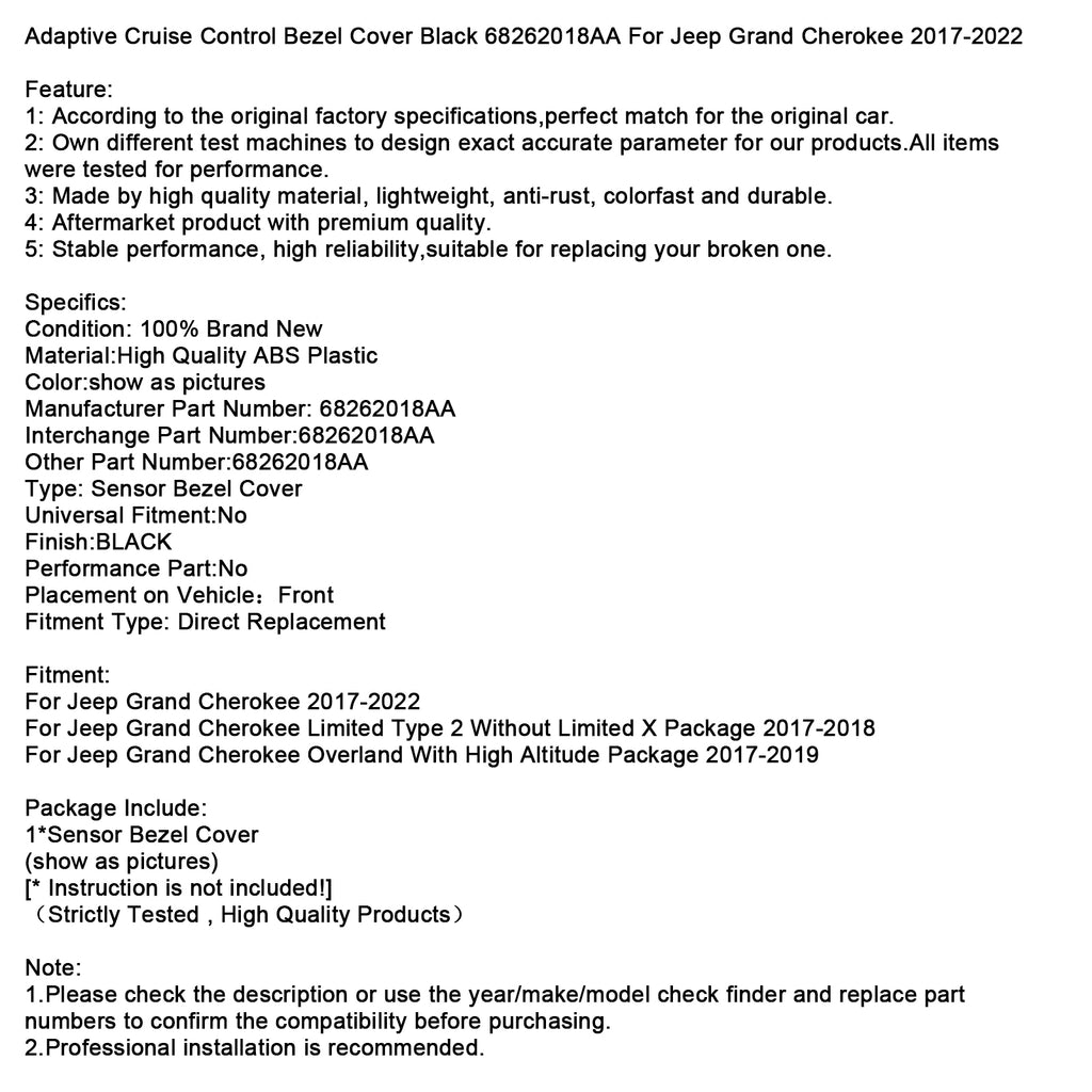 Adaptive Cruise Control Bezel Cover Black 68262018AA For Jeep Grand Cherokee 2017-2022