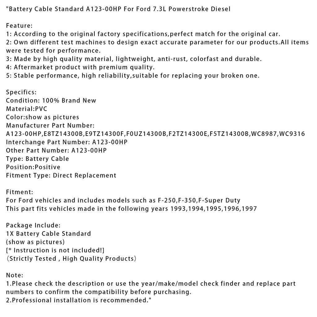 Battery Cable Standard A123-00HP For Ford 7.3L Powerstroke Diesel