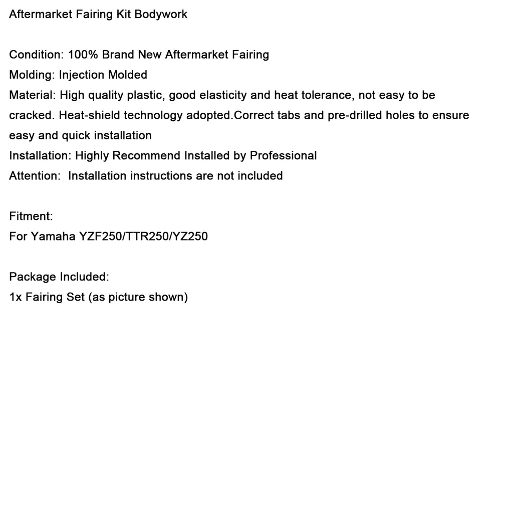 Yamaha YZF250 TTR250 YZ250 Body Plastic Kit Front Rear Fender Fairing