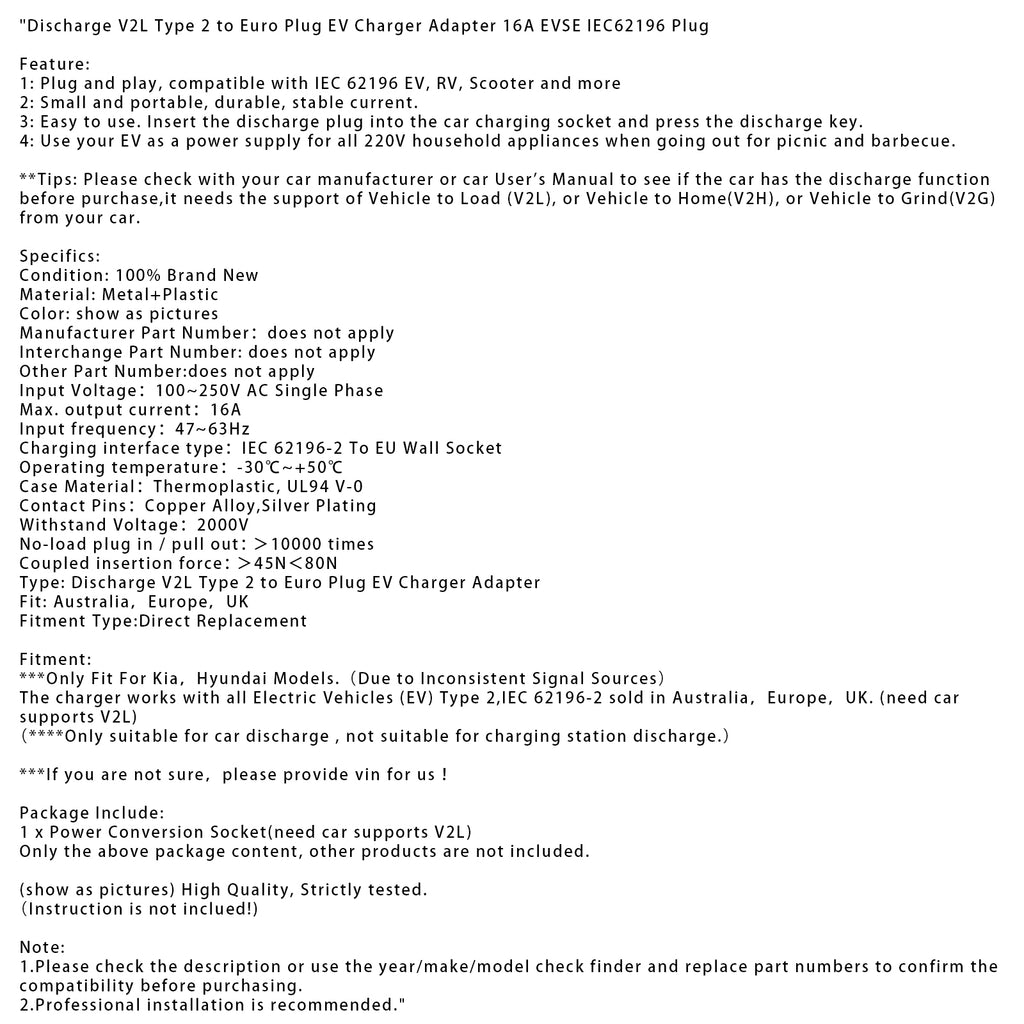 Type: Discharge V2L Type 2 to Euro Plug EV Charger Adapter